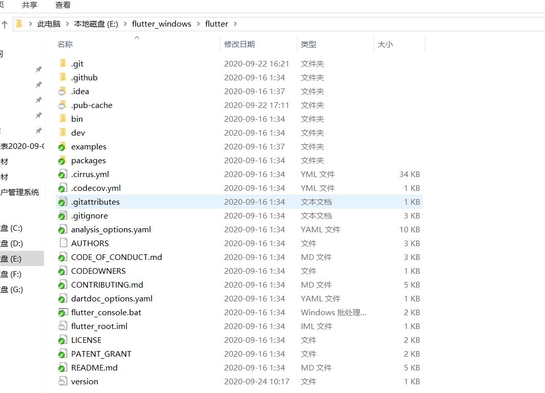 2、把下载好的Flutter SDK随便减压到你想安装 Sdk 的目录如(E:\flutter_windows\flutter)