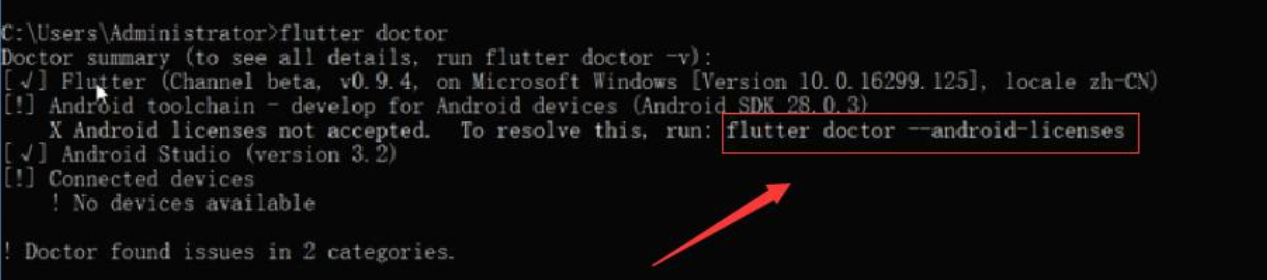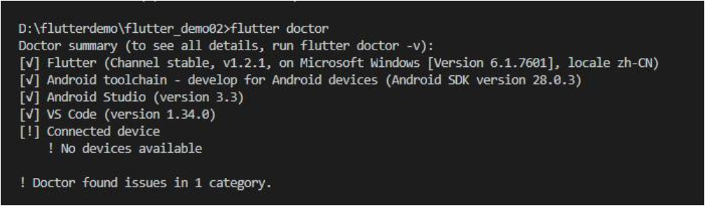 5、运行flutter doctor命令检测环境是否配置成功