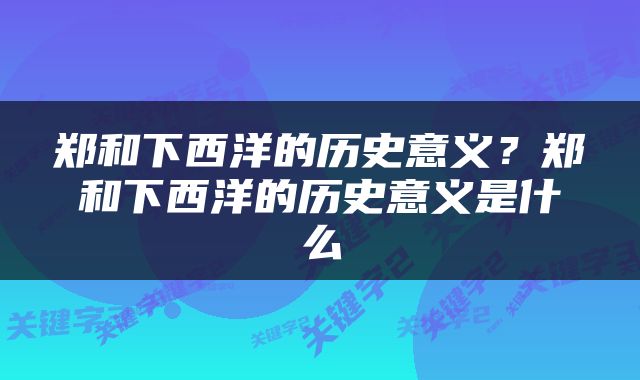 展示了明朝前期中国国力的强盛,中国的海军纵横大洋,实现了万国朝贡,盛世追迹汉唐;加强了中国明朝政府与海外各国的联系,向海外诸国传播了先进的中华文明,加强了东西方文明间的交流;这是中国古代历史上最后一件世界性的盛举,从此,再没有此类的壮举。改变了自明太祖朱元璋以来的禁海政策,开拓了海外贸易。