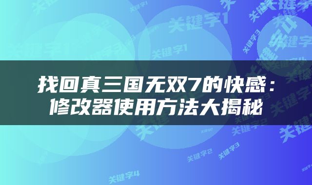 真三国无双7是一款非常经典的动作游戏,但是游戏难度非常高,有时需要花费大量的时间和精力才能通关。因此,如果您不想花费太多的时间和精力,或者想要更好的游戏体验,那么使用修改器就是一个不错的选择。
