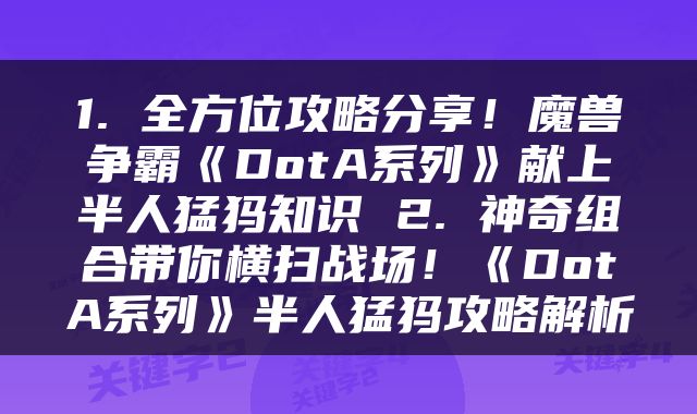 魔兽争霸《DotA系列》一直以来都是各国游戏玩家的心头好。而最受欢迎的英雄们,自然少不了半人猛犸。那么如何将半人猛犸运用到极致,取得胜利呢?今天,我们来分享一些半人猛犸的攻略和玩法。
