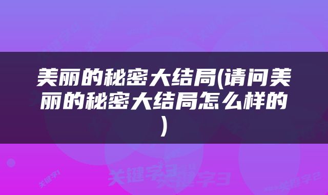 其实美丽的秘密大结局的问题并不复杂,但是又很多的朋友都不太了解请问美丽的秘密大结局怎么样的,因此呢,今天小编就来为大家分享美丽的秘密大结局的一些知识,希望可以帮助到大家,下面我们一起来看看这个问题的分析吧!