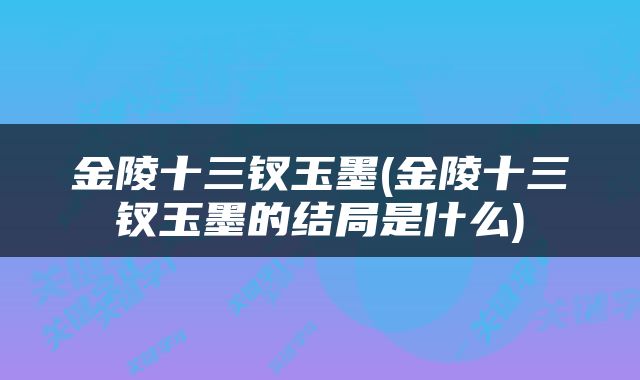 关于金陵十三钗玉墨,金陵十三钗玉墨的结局是什么的介绍到此结束,希望对大家有所帮助。