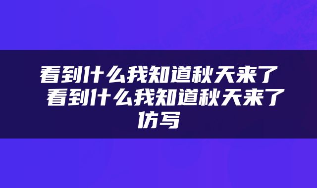 今天给各位分享看到什么我知道秋天来了的知识,其中也会对看到什么我知道秋天来了仿写进行解释,如果能碰巧解决你现在面临的问题,别忘了关注本站,现在开始吧!