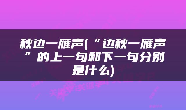 边秋一雁声的上句是:戍鼓断人行。这句出自杜甫的《月夜忆舍弟》,原文如下:戍鼓断人行,边秋一雁声。露从今夜白,月是故乡明。有弟皆分散,无家问死生。寄书长不达,况乃未收兵。这首诗是759年(乾元二年)秋杜甫在秦州所作。这年九月,安史之乱,安禄山、史思明从范阳引兵南下,攻陷汴州,西进洛阳,山东、河南都处于战乱之中。