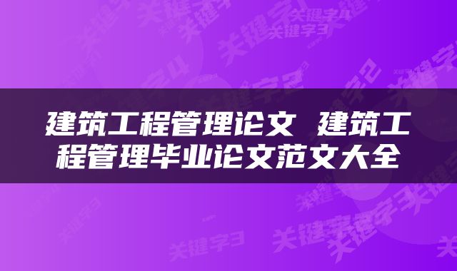 建筑工程管理毕业论文范文大全