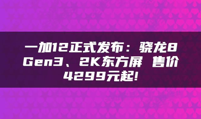 今日,一加12正式发布,其中12GB+256GB版本售价为4299元,16GB+512GB版本售价为4799元,16GB+1TB版本售价为5299元,24GB+1TB版本售价为5799元。