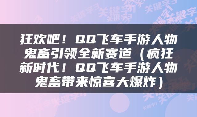 狂欢吧!QQ飞车手游人物鬼畜引领全新赛道(疯狂新时代!QQ飞车手游人物鬼畜带来惊喜大爆炸) 狂欢吧!QQ飞车手游人物鬼畜作为游戏中最具特色的玩法,相信很多玩家都非常喜欢吧!那么本次活动到底有哪些惊喜呢?今天就让小编为大家介绍一下狂欢吧!QQ飞车手游人物鬼畜(疯狂新时代!)的精彩内容吧!