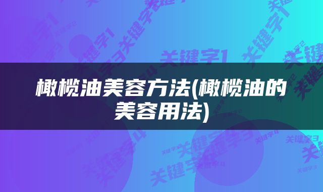 大家对于橄榄油可能不会陌生,但是橄榄油可不局限于做菜,也可以用来美容。下面我为大家整理了橄榄油美容方法大全,给大家参考。