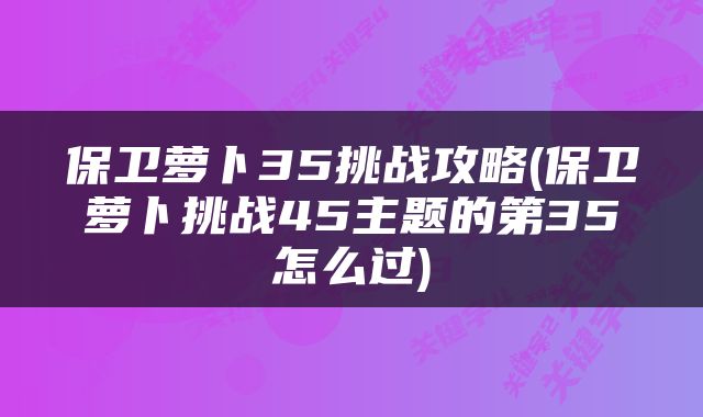 文章分享结束,保卫萝卜35挑战攻略和保卫萝卜挑战45主题的第35怎么过的答案你都知道了吗?欢迎再次光临本站哦!