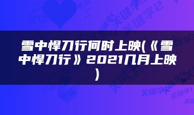 各位老铁们好,相信很多人对雪中悍刀行何时上映都不是特别的了解,因此呢,今天就来为大家分享下关于雪中悍刀行何时上映以及《雪中悍刀行》2021几月上映的问题知识,还望可以帮助大家,解决大家的一些困惑,下面一起来看看吧!