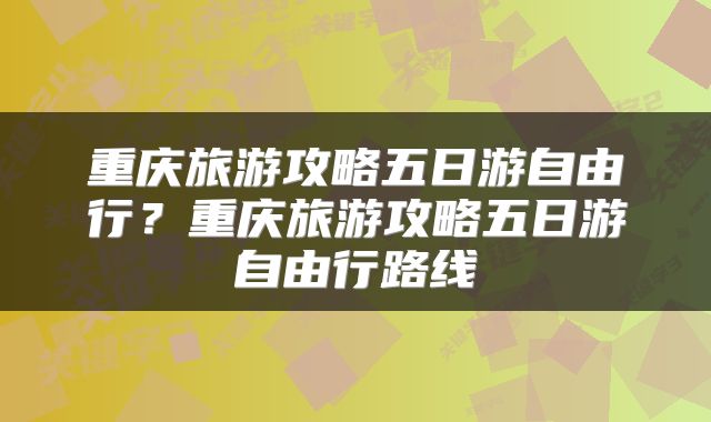今年的国庆节就要到了,国内的天气也比较舒适,很适合外出旅游,有不少朋友国庆节都计划去重庆旅游,那么到重庆游玩五天应该怎样安排呢?下面小编都为大家整理好了。