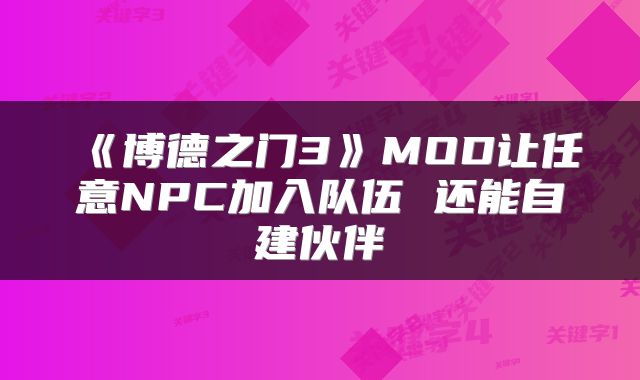 《博德之门3》中玩家可以与一些NPC结伴而行,这些伙伴可以为玩家带来很多好处,还能发展友好关系。不过,游戏中只有特定NPC可以成为伙伴,大部分NPC并不能加入玩家的队伍。而现在,有人通过MOD加入了可以高度自定义的伙伴。