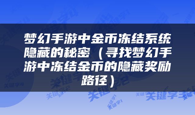梦幻手游中金币冻结系统隐藏的秘密(寻找梦幻手游中冻结金币的隐藏奖励路径) 梦幻西游手游中金币冻结系统隐藏的秘密(寻找梦幻手游中冻结金币的隐藏奖励路径),在《梦幻西游》游戏里,除了有日常的活动玩法之外,也有着一些特殊的系统,比如说,在某些任务中,玩家可能会获得金钱、道具等奖励,但这些奖励往往是被冻结了。其实,这并不影响玩家们对游戏中的各种玩法的研究和体验,今天我们就为大家详细解析一下,在《梦幻西游》手游中有这么一个设定——金币冻结,在你使用了金币冻结之后,你能获得什么呢?