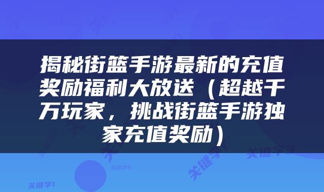 揭秘街篮手游最新的充值奖励福利大放送(超越千万玩家,挑战街篮手游独家充值奖励) 揭秘街篮手游最新的充值奖励福利大放送(超越千万玩家,挑战街篮手游独家充值奖励)分享。相信大家在玩游戏的时候都会有各种各样的惊喜奖励,今天小编就给大家介绍一下这款游戏,下面让我们一起来看看这款游戏的最新充值奖励福利吧!