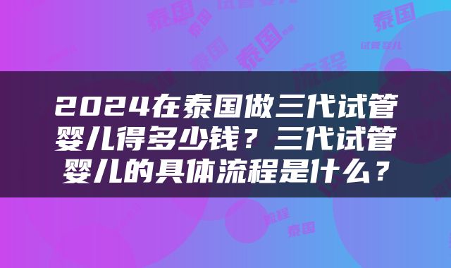 在泰国做三代试管婴儿得多少钱?经过以上介绍,相信您对此已经有了相关了解,如果患者属于高龄,或者患有某些试管系统方面的疾病,需要先调理、治疗才能做三代试管婴儿的,就会产生额外的费用。如有其他疑问,可点击客服询问哦。