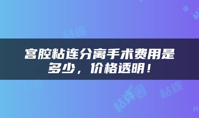 - 09-29 宫腔粘连分离手术费用是多少,价格透明!