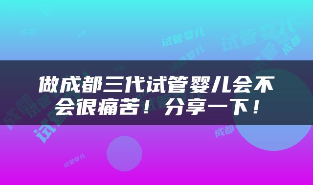 做会不会很痛苦?成都三代试管婴儿攻略。了解更多做成都三代试管婴儿方面的事宜,可以结合具体需求留言或致电试管婴儿任何相关问题,讲解试管流程、费用、成功率,教您身体检查和调理,提高您的试管成功率+降低试管费用!