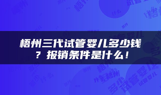 - 09-30 梧州三代试管婴儿多少钱?报销条件是什么!