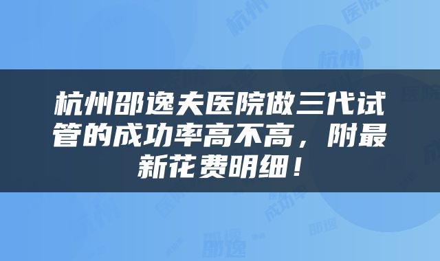 - 10-01 杭州邵逸夫医院做三代试管的成功率高不高,附最新花费明细!