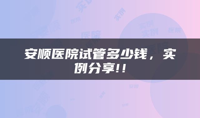 - 10-02 安顺医院试管多少钱,实例分享!!