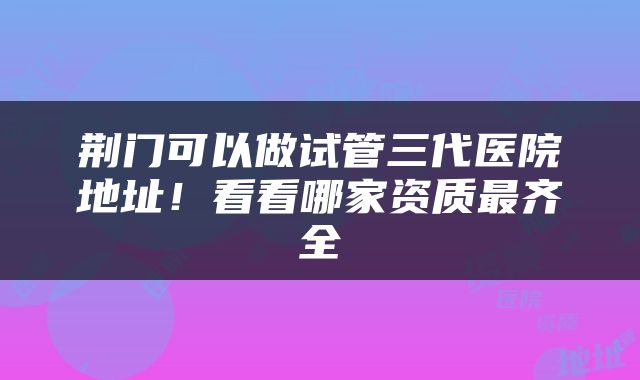 荆门可以做试管三代医院地址!看看哪家资质最齐全?想要选择一家合适的试管三代医院进行治疗,了解医院的资质是非常重要的。在荆门地区有几家值得关注的试管三代医院,它们分别是:荆门市中心医院生殖中心、荆门市第一人民医院生殖中心和荆门市妇幼保健院生殖中心。