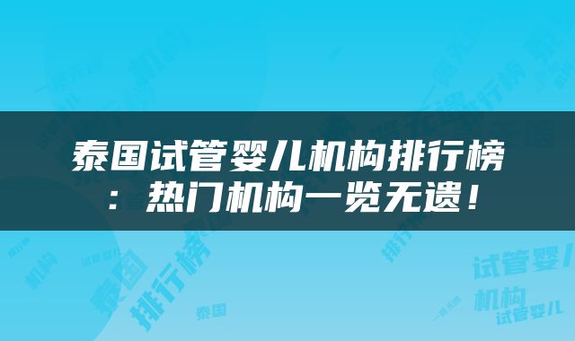 - 12-12 泰国试管婴儿机构排行榜:热门机构一览无遗!
