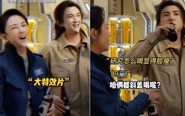 虽然不乏演员敬业表演这样的感人时刻,但还是有不少欢乐在片场发生。在拍摄《独行月球》中,沈腾马丽在片场研究怎么喝饮料才显瘦,最终都决定侧脸喝。而沈腾却调侃到时候拍完,不知道谁演的,特效全在修脸,俩人看着一模一样,现场直接捧腹大笑。