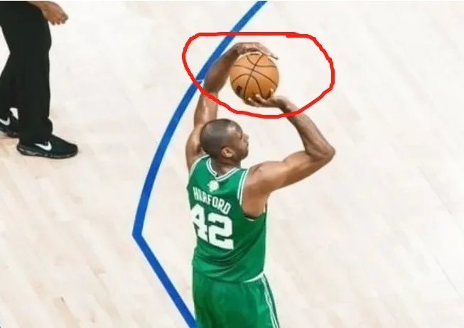 准则准矣,未尽善焉,这“未尽善”的地方就是霍福德的投篮姿势,精准有余,美观不足,每次看见他在三分线外接球,并没有太明显的屈膝蹲胯,双脚又分得很开,然后就慢悠悠地举球过顶,这个时候注意他的辅助手的位置,似乎要阻拦球飞出去,看上去这种一手投篮,一手盖自己帽的投篮姿势太不科学,