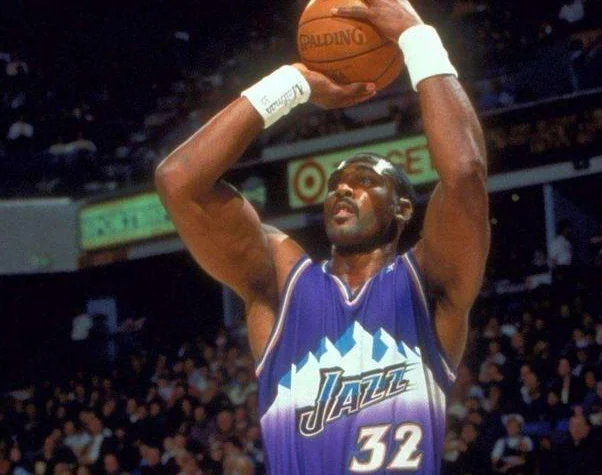 他的中投和另一位爵士名宿卡尔马龙有异曲同工之妙,马龙曾在罚球线连续命中8记中投,证明肌肉男也是可以拥有柔和手感的。