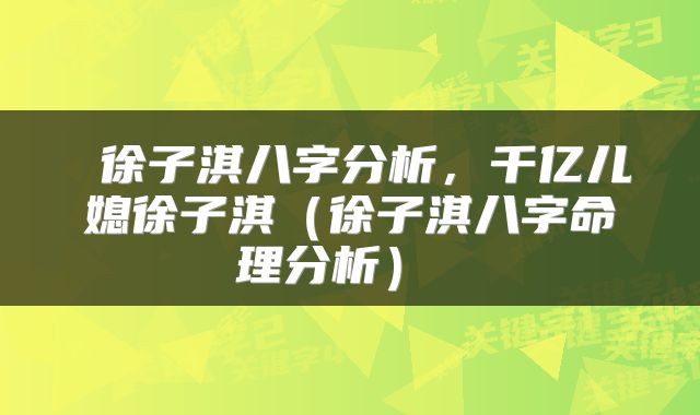 本文关键词:徐子淇八字辰戌冲,徐子淇八字好在哪,徐子淇八字一般,徐子淇八字命理,徐子淇八字太弱。这就是关于《徐子淇八字分析,千亿儿媳徐子淇(徐子淇八字命理分析)》的所有内容,希望对您能有所帮助!