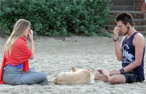 俯卧在地上,两手两脚打开与肩同宽。吸气,吐气的时候,四肢同时向上抬起。