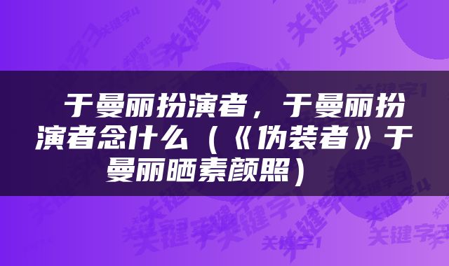 本文关键词:于曼丽扮演者有几个,于曼丽扮演者,于曼丽扮演者有哪些,于曼丽扮演者在琅琊榜,于曼丽角色。这就是关于《于曼丽扮演者,于曼丽扮演者念什么(《伪装者》于曼丽晒素颜照)》的所有内容,希望对您能有所帮助!