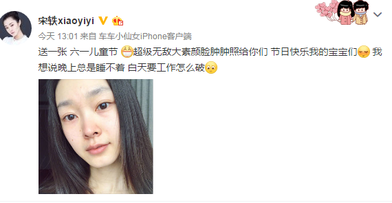 今日是六一儿童节,娱乐圈的明星们有很多都晒出了自己的童年照,而宋轶则不走寻常路,在这天晒出了自己的素颜照,连眉毛都没画的真正素颜照。
