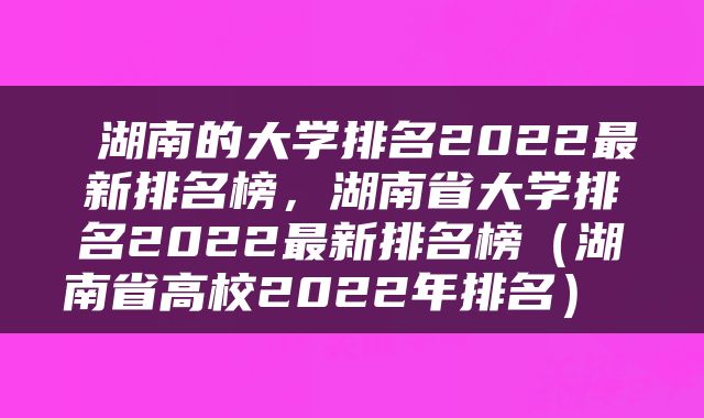 关于【湖南的大学排名2022最新排名榜】,湖南省大学排名2022最新排名榜,今天小编给您分享一下,如果对您有所帮助别忘了关注本站哦。