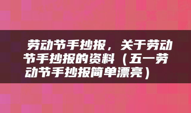 关于【劳动节手抄报】:劳动节手抄报,关于劳动节手抄报的资料,今天小编给您分享一下,如果对您有所帮助别忘了关注本站哦。