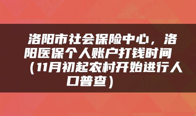 本文关键词:医保帐户什么时候打钱,洛阳医保卡每月打入多少钱,洛阳医保个人账户打钱时间查询,医保卡每年几月份打钱到个人账户,洛阳职工医保个人账户是怎么返钱。这就是关于《洛阳市社会保险中心,洛阳医保个人账户打钱时间(11月初起农村开始进行人口普查)》的所有内容,希望对您能有所帮助!