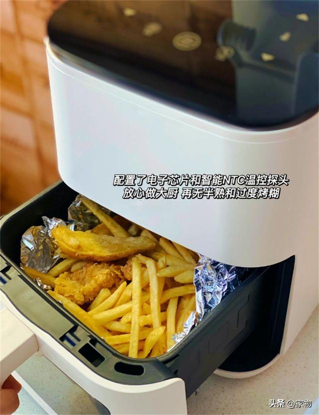用完后发觉:空气炸锅简直是厨房小白福音!无需预热,使用时只要将准备好的食材放进去,设定好时间就能等着出锅,比烤箱好上手。