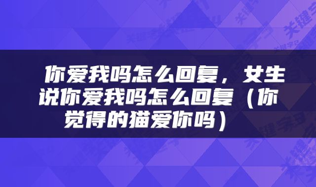 本文关键词:女朋友说你爱我吗怎么回复,女友问你爱我吗怎么回复,你爱我吗怎么回复女生,你爱我吗怎么回复男友,你爱我吗怎么回复高情商男。这就是关于《你爱我吗怎么回复,女生说你爱我吗怎么回复(你觉得的猫爱你吗)》的所有内容,希望对您能有所帮助!