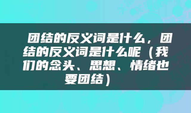 本文关键词:团结的反义词是什么呢,团结反义词是什么?(标准答案),团结的反义词是什么,热闹的反义词是什么,和平和团结的反义词是什么。这就是关于《团结的反义词是什么,团结的反义词是什么呢(我们的念头、思想、情绪也要团结)》的所有内容,希望对您能有所帮助!