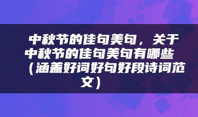 本文关键词:关于中秋节的佳句美句有哪些三年级,中秋节的 佳句,关于中秋节佳句我知道,中秋节佳句子,关于中秋节的佳句美句有哪些?。这就是关于《中秋节的佳句美句,关于中秋节的佳句美句有哪些(涵盖好词好句好段诗词范文)》的所有内容,希望对您能有所帮助!