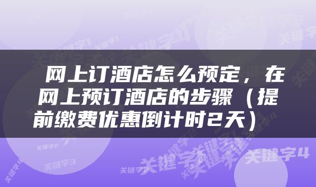 本文关键词:网上订酒店流程,如何从网上预订酒店,网上预订酒店如何入住,在网上如何预定酒店,怎样在网上预订酒店。这就是关于《网上订酒店怎么预定,在网上预订酒店的步骤(提前缴费优惠倒计时2天)》的所有内容,希望对您能有所帮助!