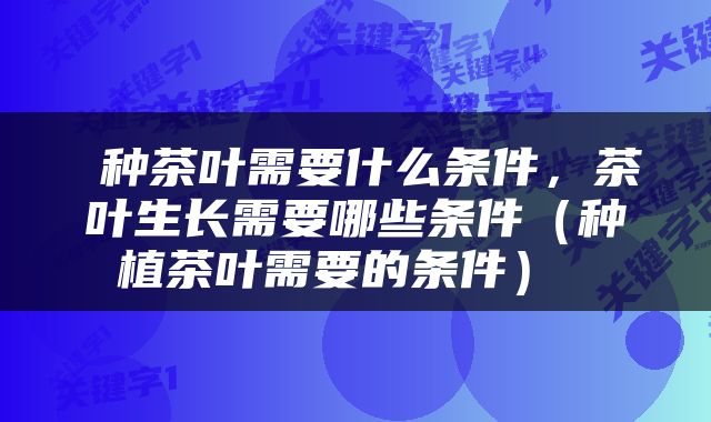 本文关键词:茶叶生长有利条件,茶叶生长过程图片,茶叶生长需要哪些条件和要求,茶叶生长过程,茶叶的生长。这就是关于《种茶叶需要什么条件,茶叶生长需要哪些条件(种植茶叶需要的条件)》的所有内容,希望对您能有所帮助!