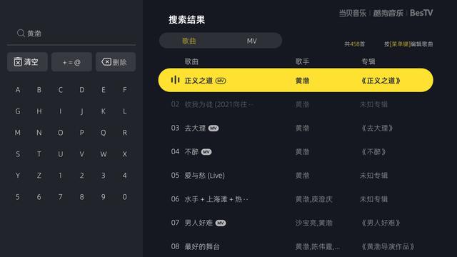 其实黄渤还有参与很多综艺节目和晚会留下的歌曲,喜欢黄渤的在家其实就能唱他的歌。通过电视下载当贝音乐,搜索“黄渤”就能出现很多他的歌曲。