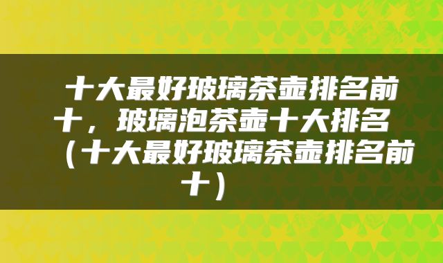 本文关键词:玻璃壶十大品牌,最好的玻璃壶品牌,玻璃泡茶壶十大排名,玻璃壶品牌排行榜前十名,玻璃壶品牌。这就是关于《十大最好玻璃茶壶排名前十,玻璃泡茶壶十大排名(十大最好玻璃茶壶排名前十)》的所有内容,希望对您能有所帮助!