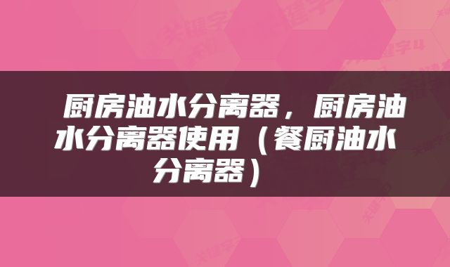 关于【厨房油水分离器】,厨房油水分离器使用,今天小编给您分享一下,如果对您有所帮助别忘了关注本站哦。