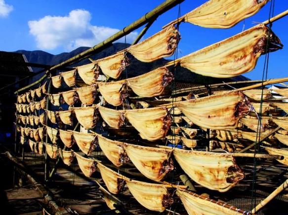 制鱼鲞的历史可以追溯到2500多年前“吴王制鲞”的传说,据说那时吴王使用的是黄鱼,这“鲞”字的形成也与吴王写下的“美下着鱼”有关。