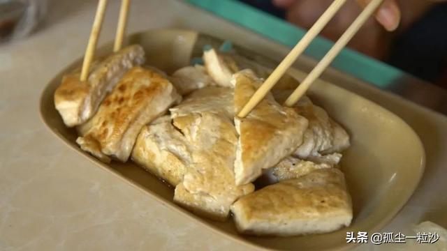 新圩豆腐润,外皮焦黄、内里嫩滑,是众多食客的心头好。每块豆腐润方形,边长约七八公分。一块块叠于竹篮上备用。做生意者,在街边摊好档口,把豆腐润放于扁平的铁锅,以文火煎之,边煎边卖,沾上油盐,食之味道可口,颇具地方特色。