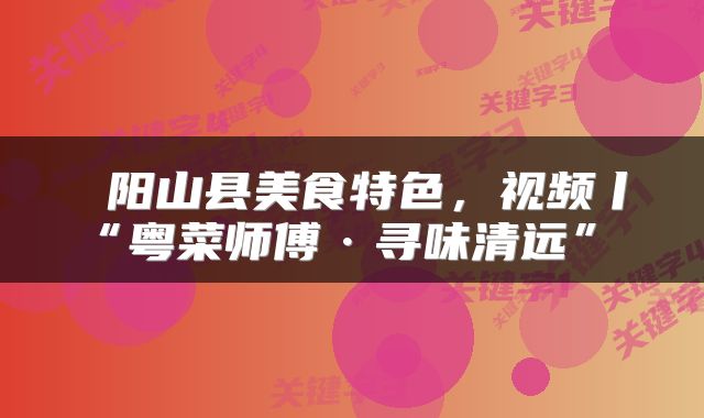 - 1、阳山县美食特色:视频丨“粤菜师傅·寻味清远” 之阳山篇