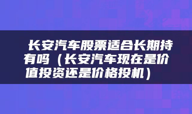 【长安汽车股票适合长期持有吗】:长安汽车现在是价值投资还是价格投机?